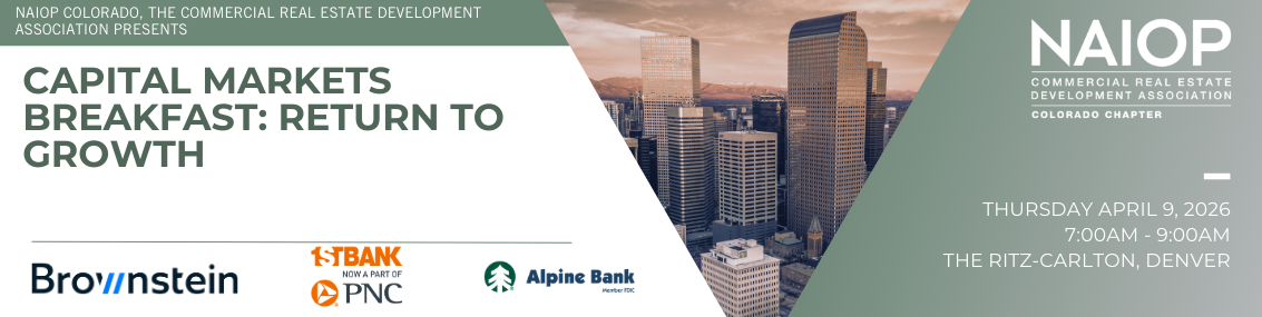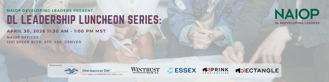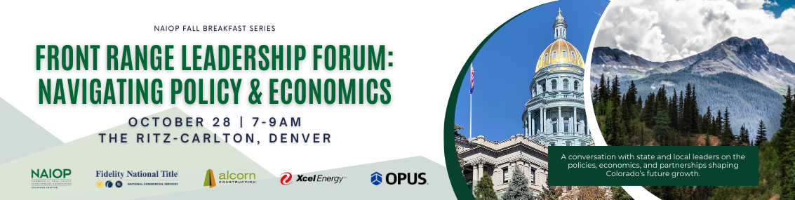 Step It Up With NAIOPWant to take your career to the next level? NAIOP Colorado will get you there. NAIOP membership connects you to meaningful partnerships, productive deals and valuable support and advocacy to help you overcome potential barriers and get business done. Join TodayBuild Meaningful RelationshipsCommittee's help advance NAIOP’s efforts to unify the local real estate community, implementing leading programming and education, actively involved in public policy as it pertains to commercial real estate, along with increasing membership and retention. Get InvolvedMajor Program SponsorsSustaining and Supporting Sponsors |
