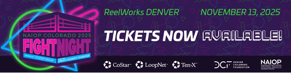 ![]() Thursday, November 13, 2025 | 5:00 PM – 11:00 PM Get ready to throw it back and turn it up! The commercial real estate industry’s most electric night returns with a 90s Neon twist. Experience live boxing, bold visuals, and next-level networking as Denver’s top CRE professionals step into the ring. Reserve your table or tickets before they sell out.